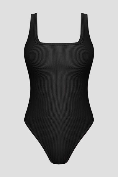 Ribbed Square Neck Sleeveless Active Bodysuit