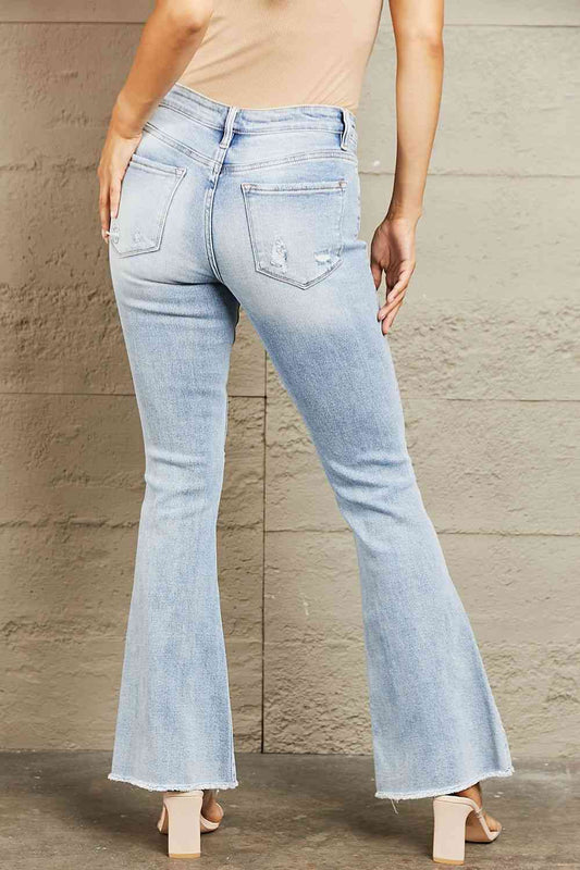 BAYEAS High Waisted Acid Wash Flare Jeans