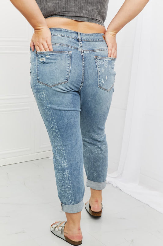 Judy Blue Maika Full Size Paisley Patterned Boyfriend Jeans