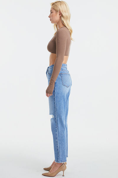 BAYEAS Full Size Mid Waist Distressed Ripped Straight Jeans