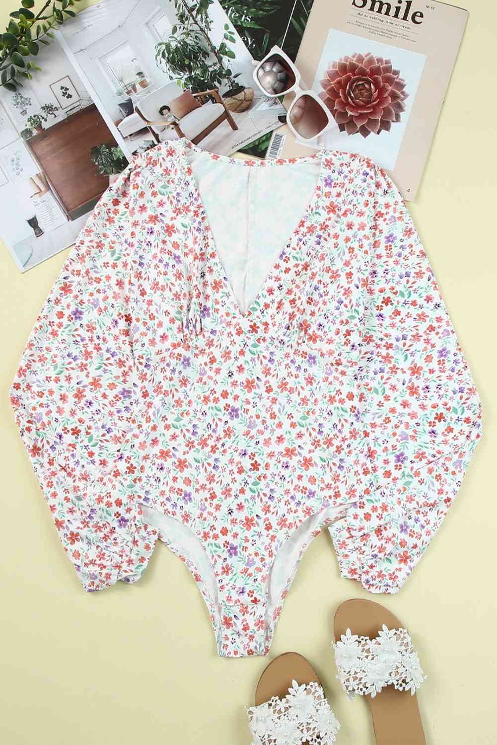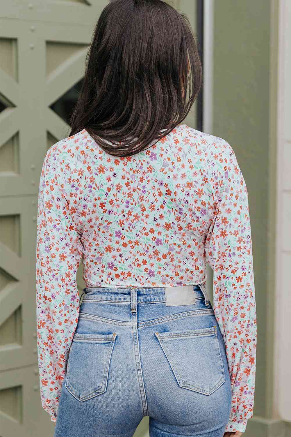 Ditsy Floral Long Sleeve Plunge Bodysuit
