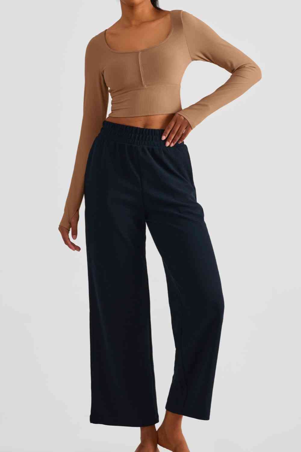 Scoop Neck Thumbhole Sleeve Cropped Sports Top